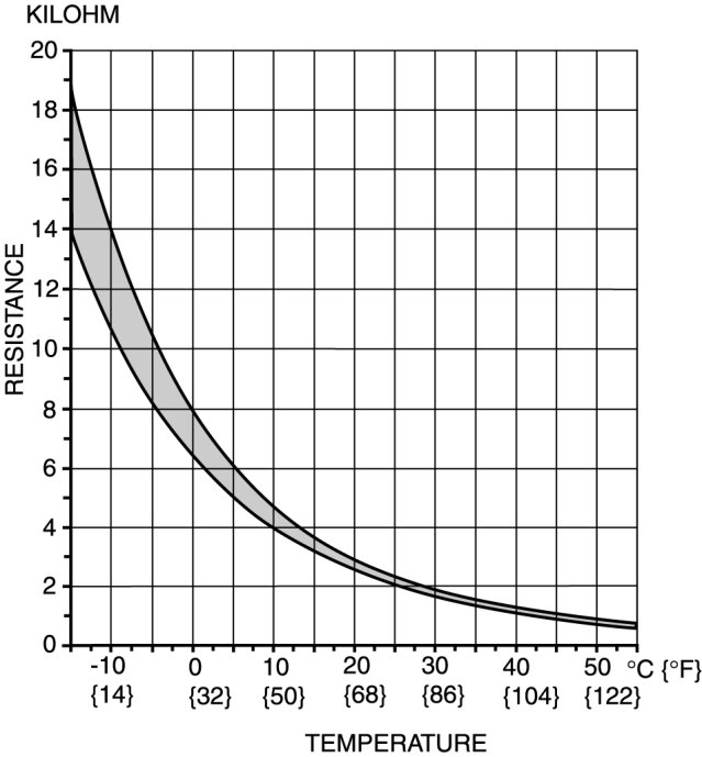 - If the resistance is not as shown in the graph, replace the passenger compartment temperature sensor.