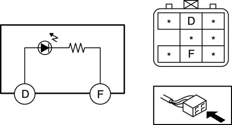 4. Apply battery voltage to power outer mirror terminal D, and terminal F to ground.
