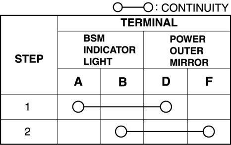 - Power outer mirror terminal D-BSM indicator light terminal A