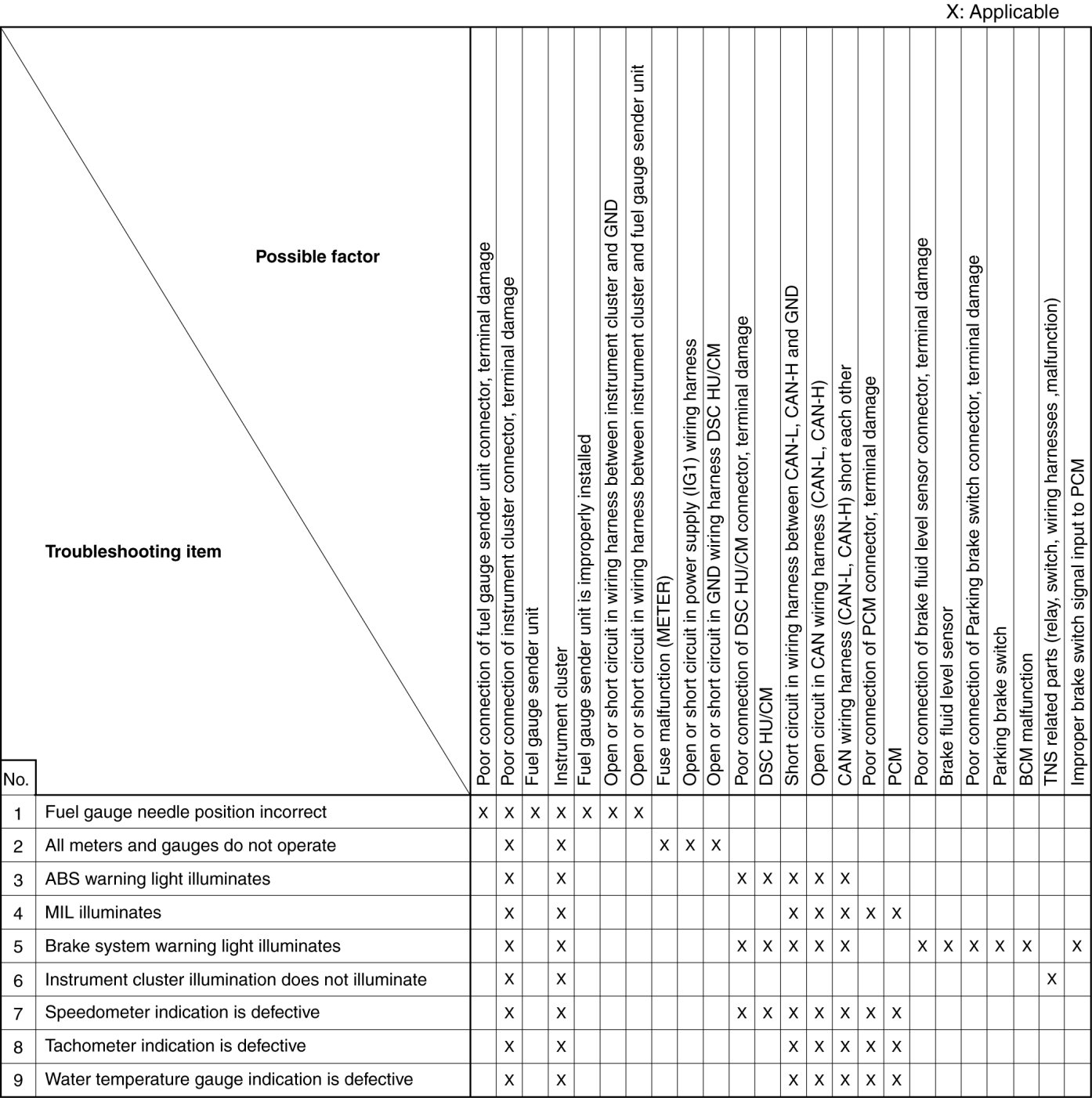 QUICK DIAGNOSTIC CHART [INSTRUMENT CLUSTER]