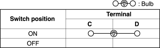 Verify that the continuity between the cargo compartment light terminals is as indicated in the table.