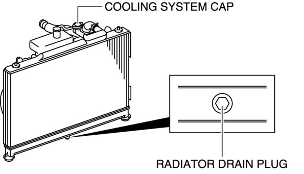 - Never remove the cooling system cap or loosen the radiator drain plug while the engine is running, or when the engine and radiator are hot. Scalding engine coolant and steam may shoot out and cause serious injury. It may also damage the engine and cooling system.