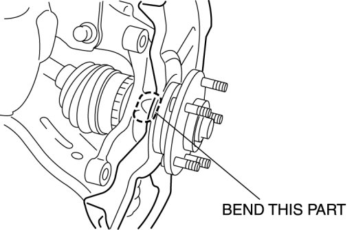 3. Tap the dust cover (the part shown in the figure) with a chisel lightly and bend the processing point back to the steering knuckle side.