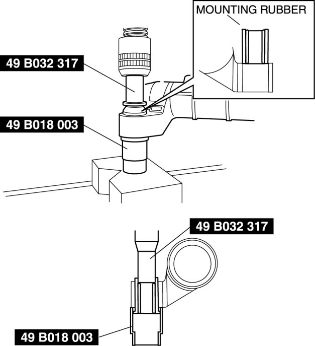 - If the mounting rubber is placed in the wrong position or assembled in the wrong direction, an installation malfunction will result when the vehicle is loaded. When assembling the mounting rubber, verify the position and directions.