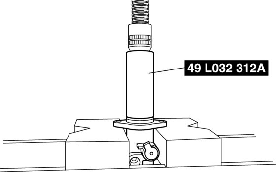 - If a tool such as a torque wrench is installed to the SST (49 E032 308), install the tool so that it is perpendicular to the SST as shown in the figure. If the tool is not installed as instructed, the SST can separate from the locknut easily which could cause damage to the locknut while doing the work.