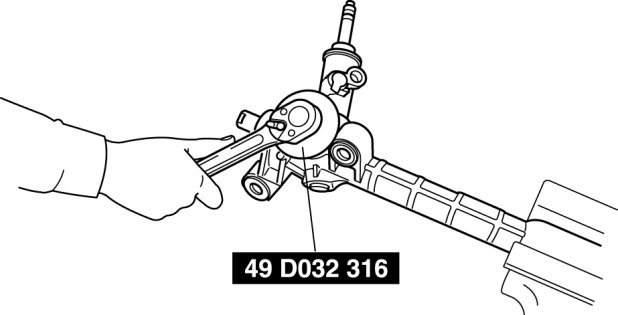 1. Lock the steering rack end against rotation with a suitable wrench and install the tie rod.