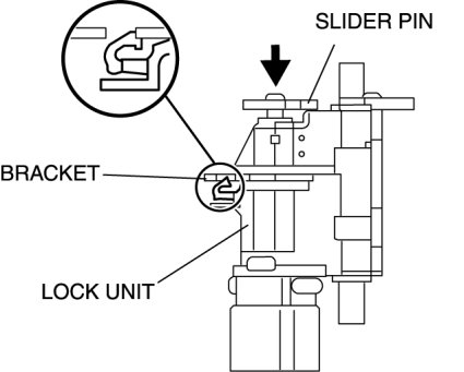 9. With the slider pin pressed, slide the lock unit to fix the lock unit hook into the bracket hole securely as shown in the figure.