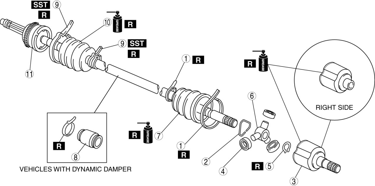 - The wheel side boot does not need to be removed unless replacing it or the ball joint and shaft component.