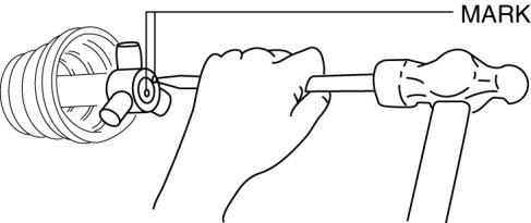 1. Align the marks and install the tripod joint using a bar and a hammer.