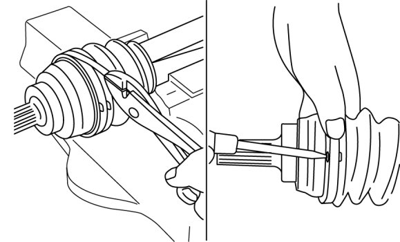 1. Remove the boot clamp with end clamp pliers as shown and discard the clamp.