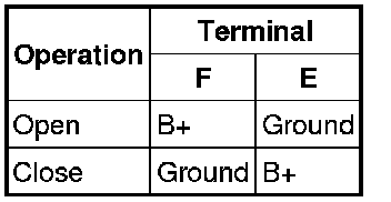 4. Apply battery positive voltage and connect the ground to power window motor terminals E and F, and then inspect the front power window motor operation.