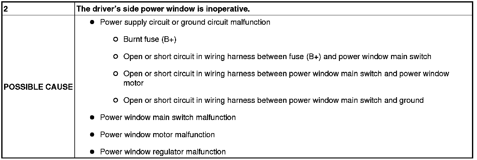 No. 2 The Driver's Side Power Window Is Inoperative