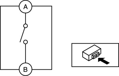 2. Inspect for continuity between the washer fluid-level sensor terminals using an ohmmeter.