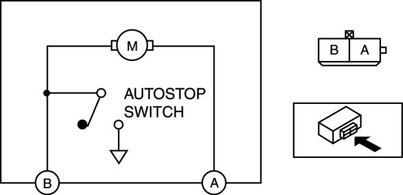 1. Connect battery positive voltage to the rear wiper motor terminal A, and ground the rear wiper motor terminal B.