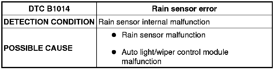 DTC B1014 [AUTO LIGHT/WIPER CONTROL MODULE]