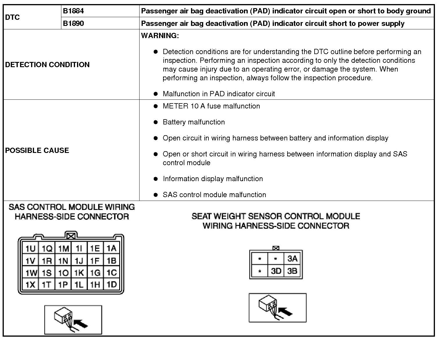 DTC B1884, B1890 [TWO-STEP DEPLOYMENT CONTROL SYSTEM]