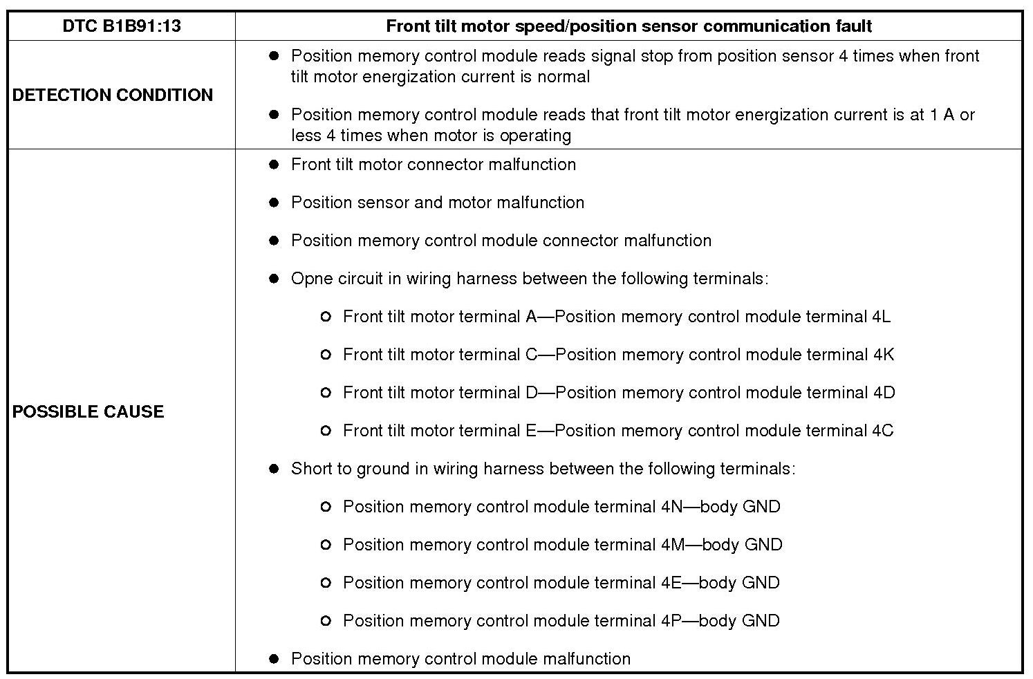 DTC B1B91:13 [POSITION MEMORY CONTROL SYSTEM]