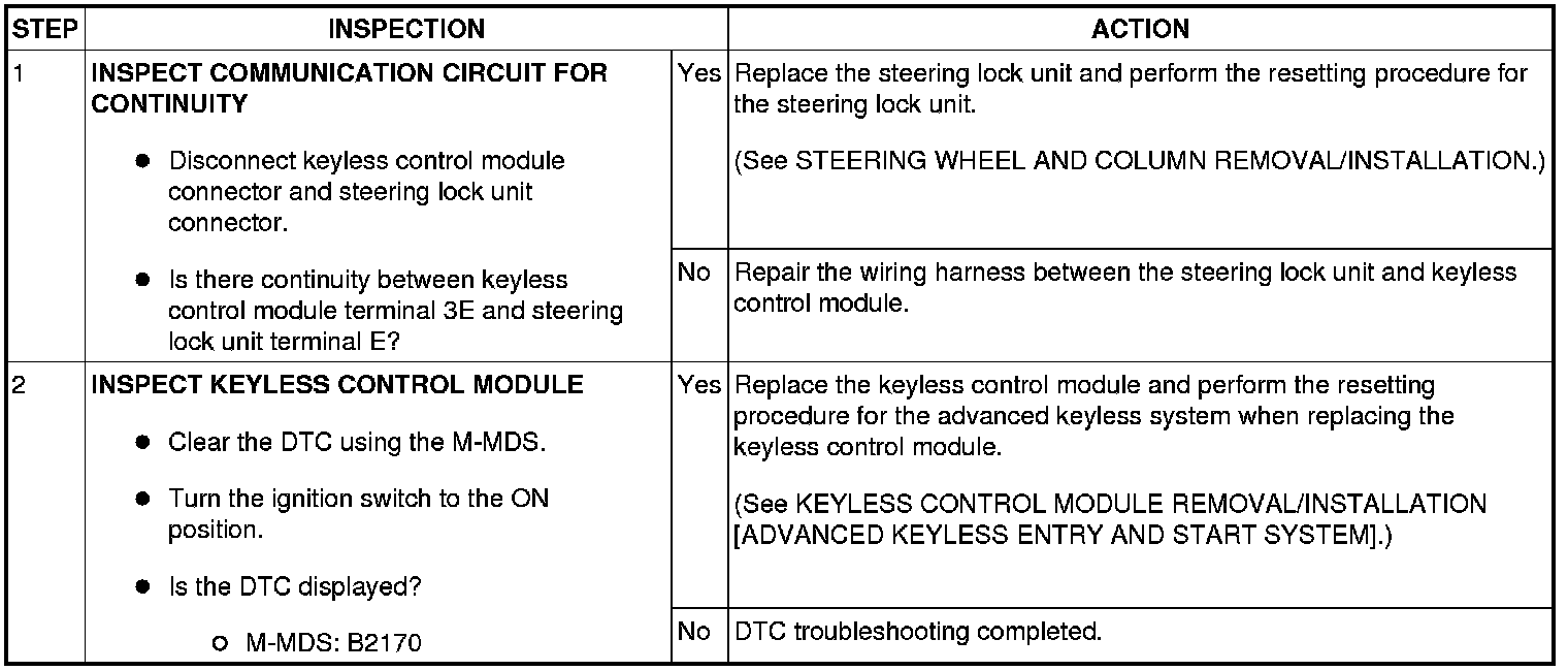 DTC B2170 [ADVANCED KEYLESS ENTRY AND START SYSTEM]