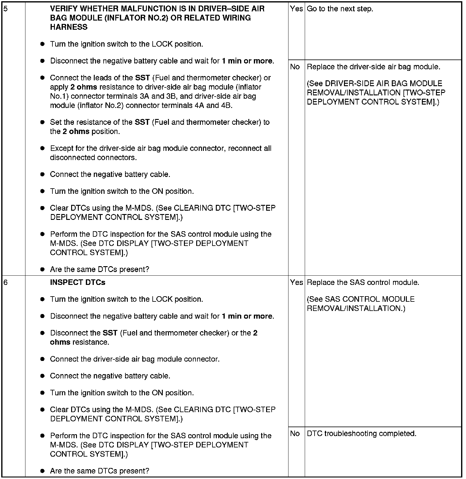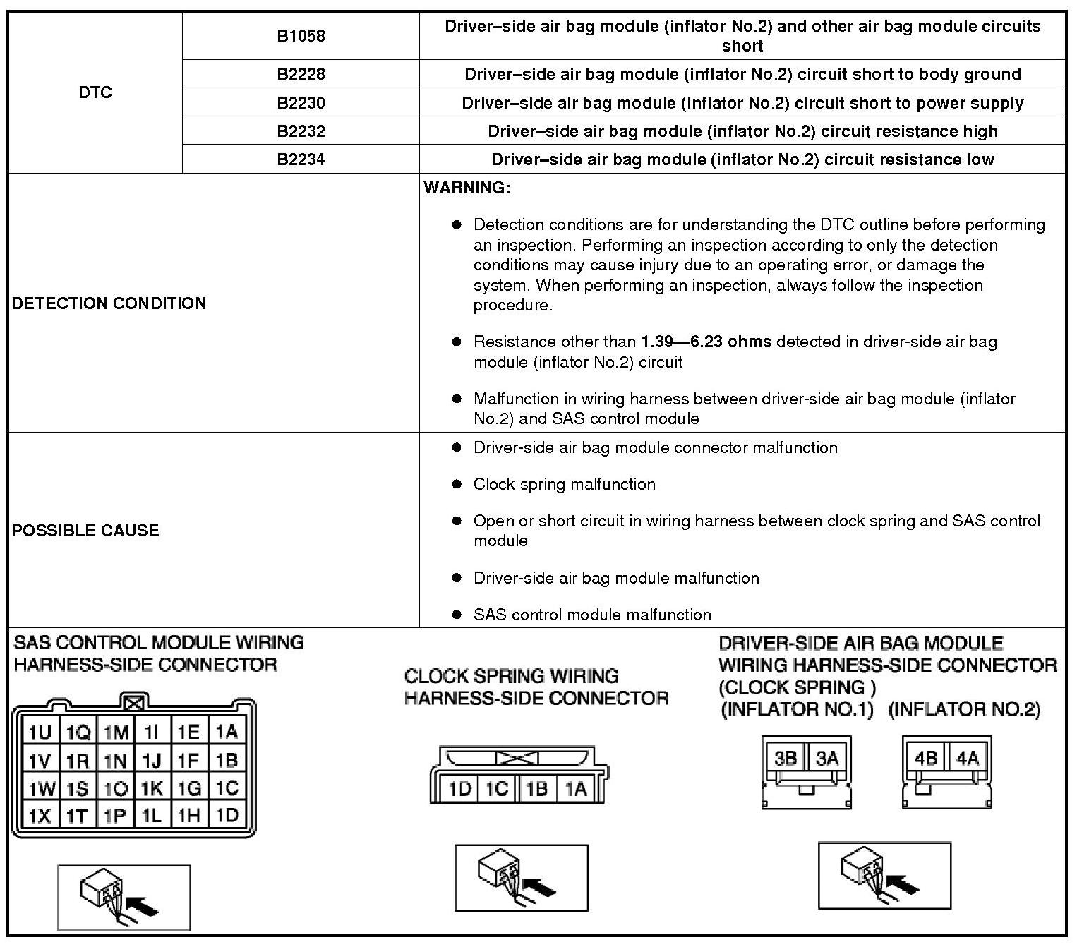 DTC B1058, B2228, B2230, B2232, B2234 [TWO-STEP DEPLOYMENT CONTROL SYSTEM]