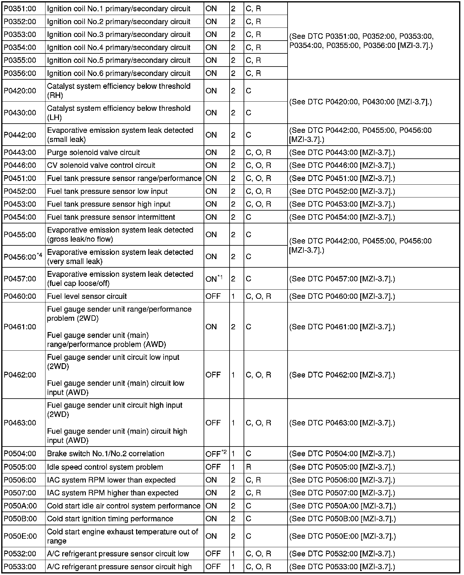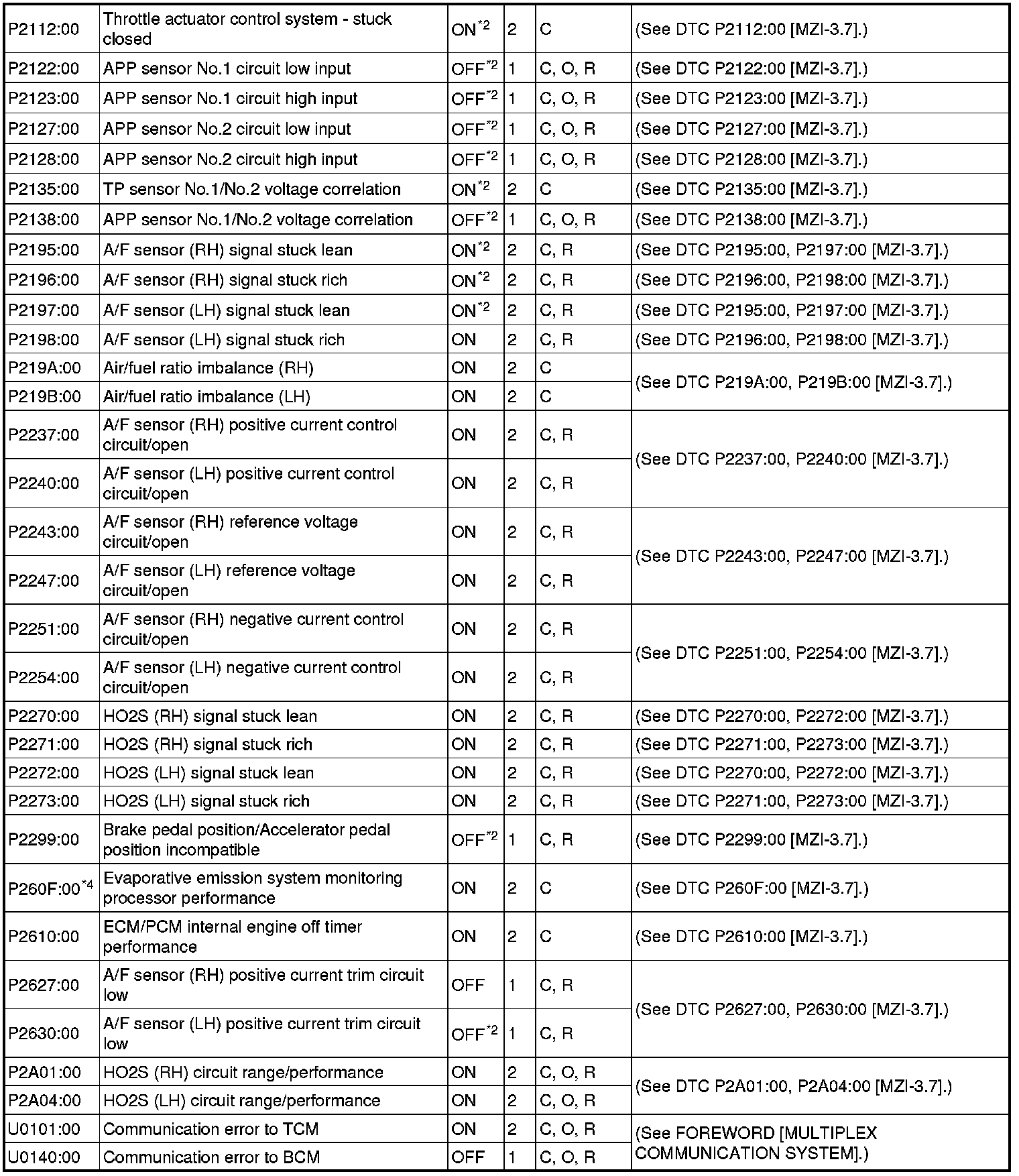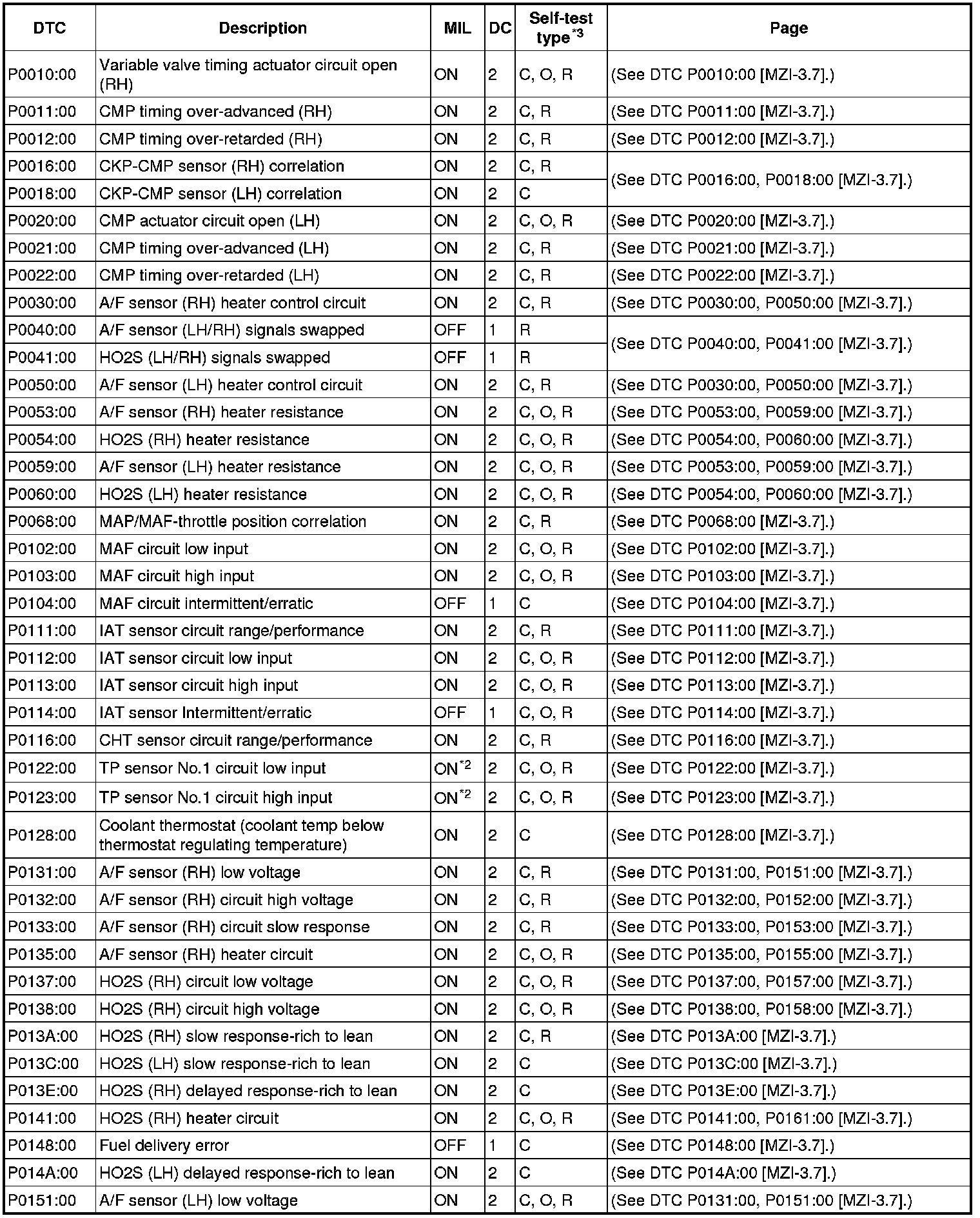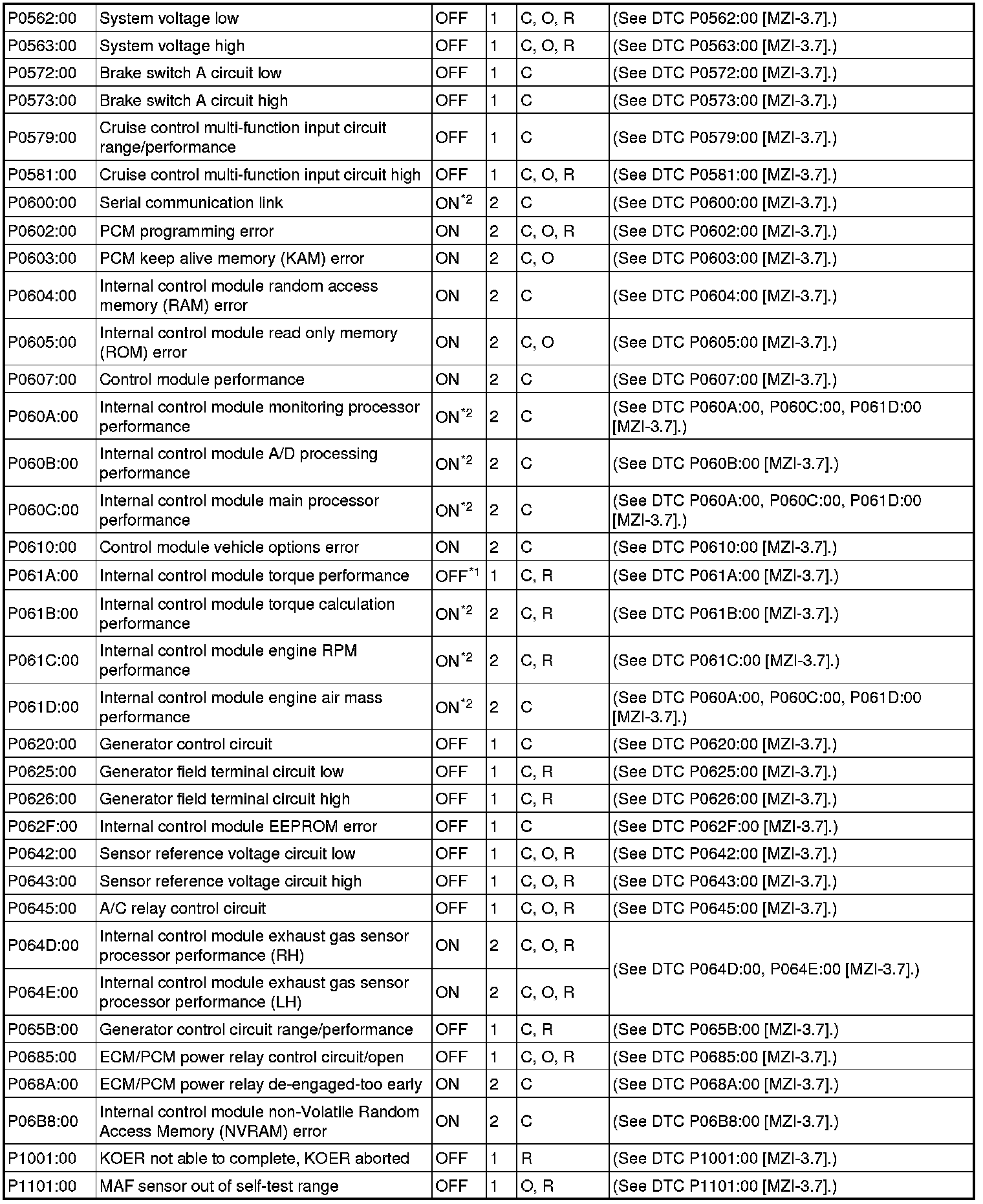 C: CMDTC self test, O: KOEO self test, R: KOER self test