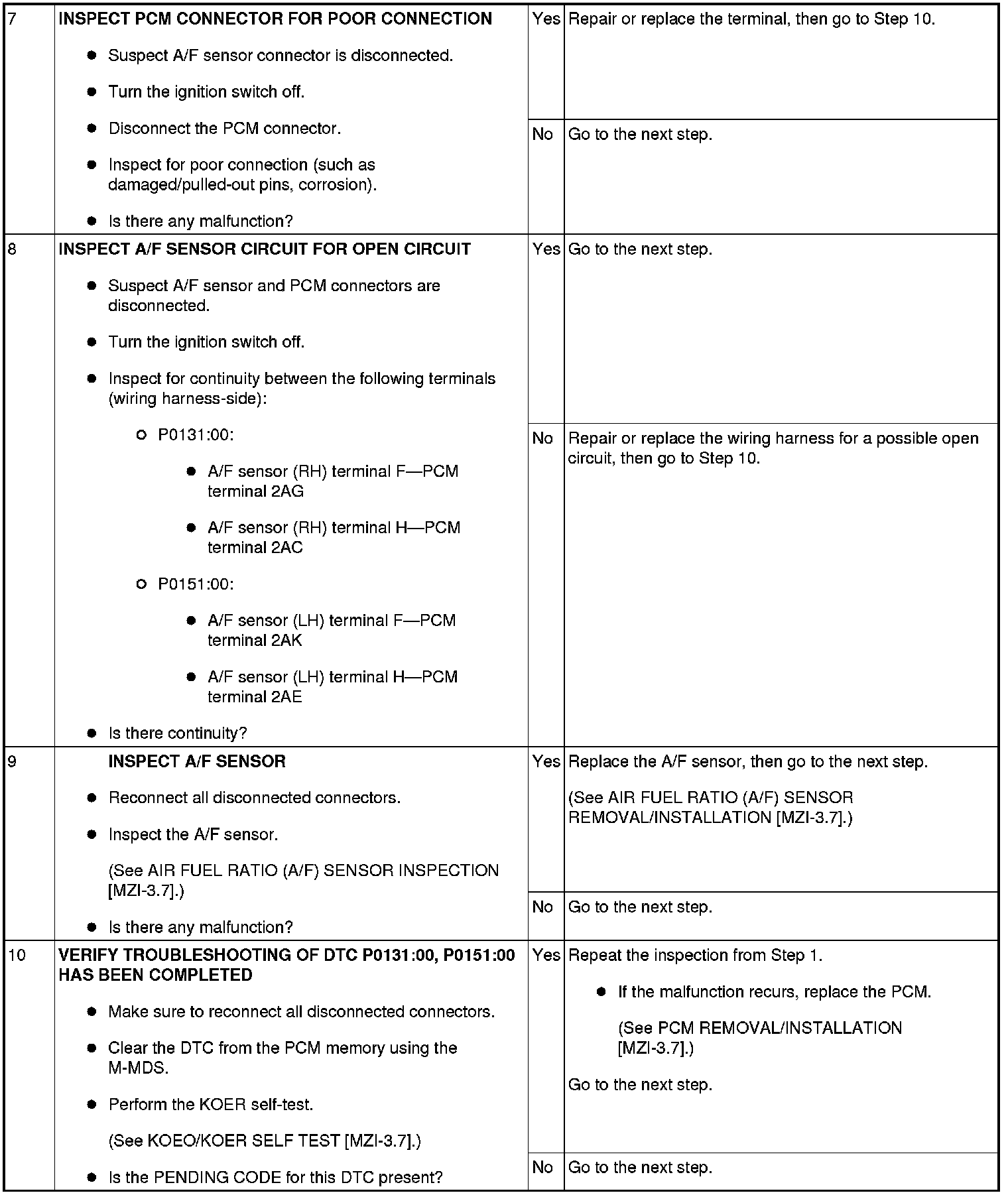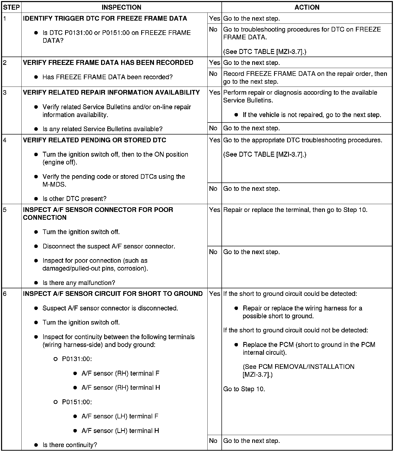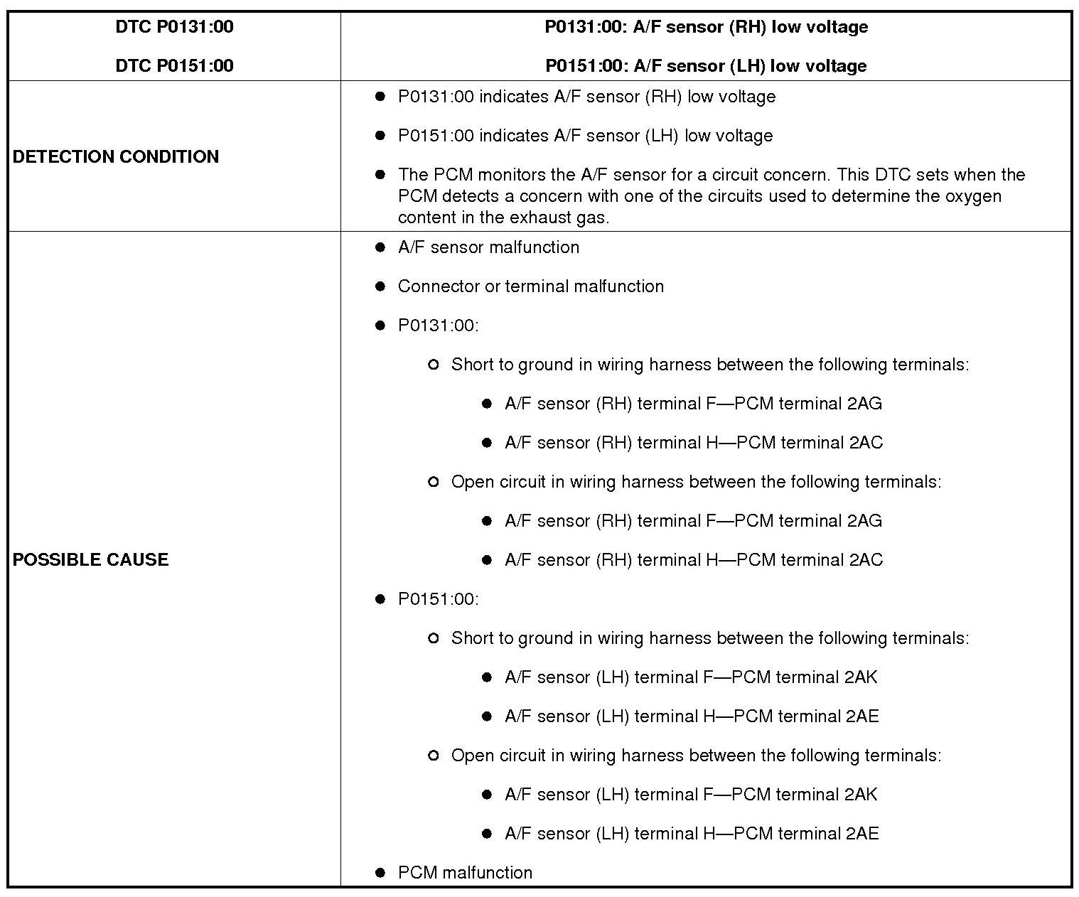 DTC P0131:00, P0151:00 [MZI-3.7]