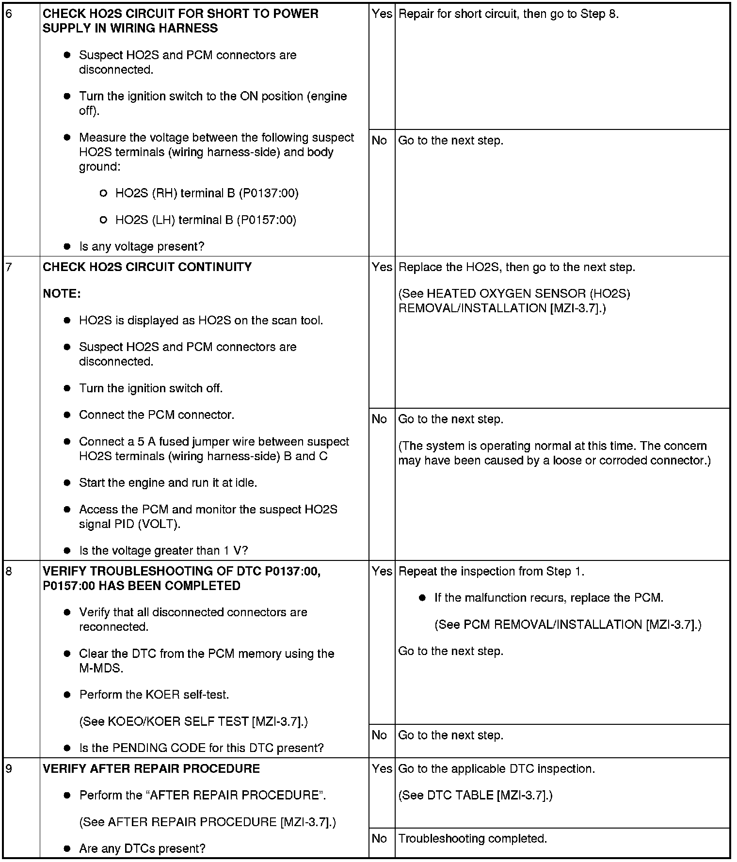 DTC P0137:00, P0157:00 [MZI-3.7]