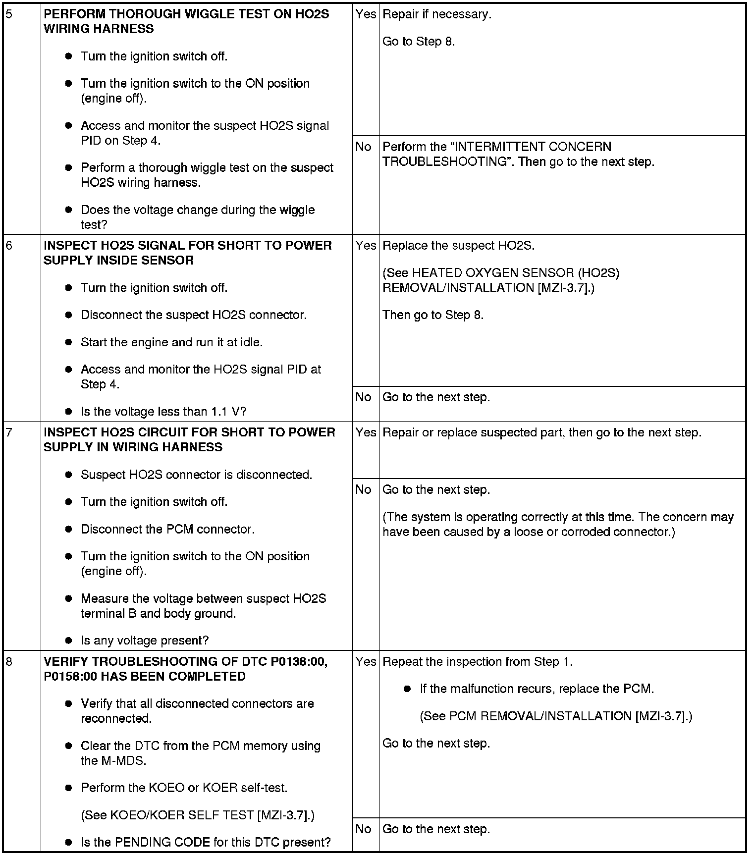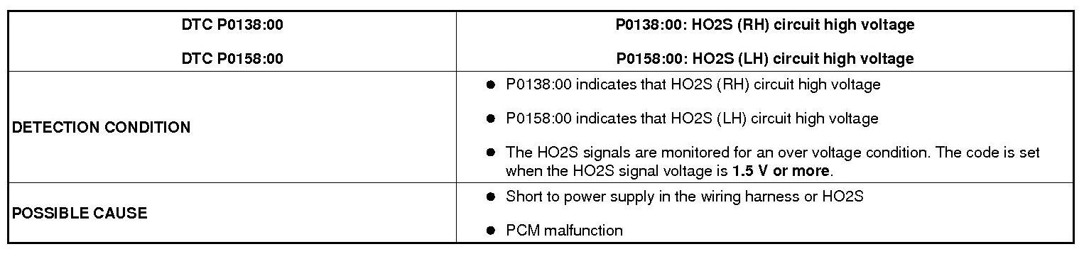 DTC P0138:00, P0158:00 [MZI-3.7]