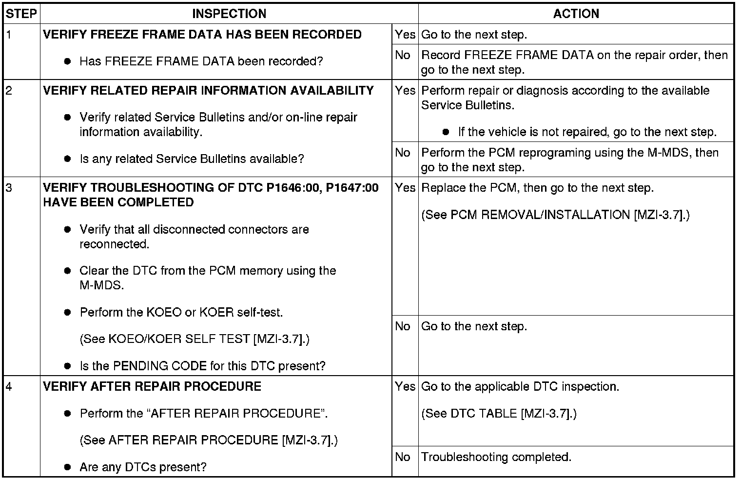 DTC P1646:00, P1647:00 [MZI-3.7]