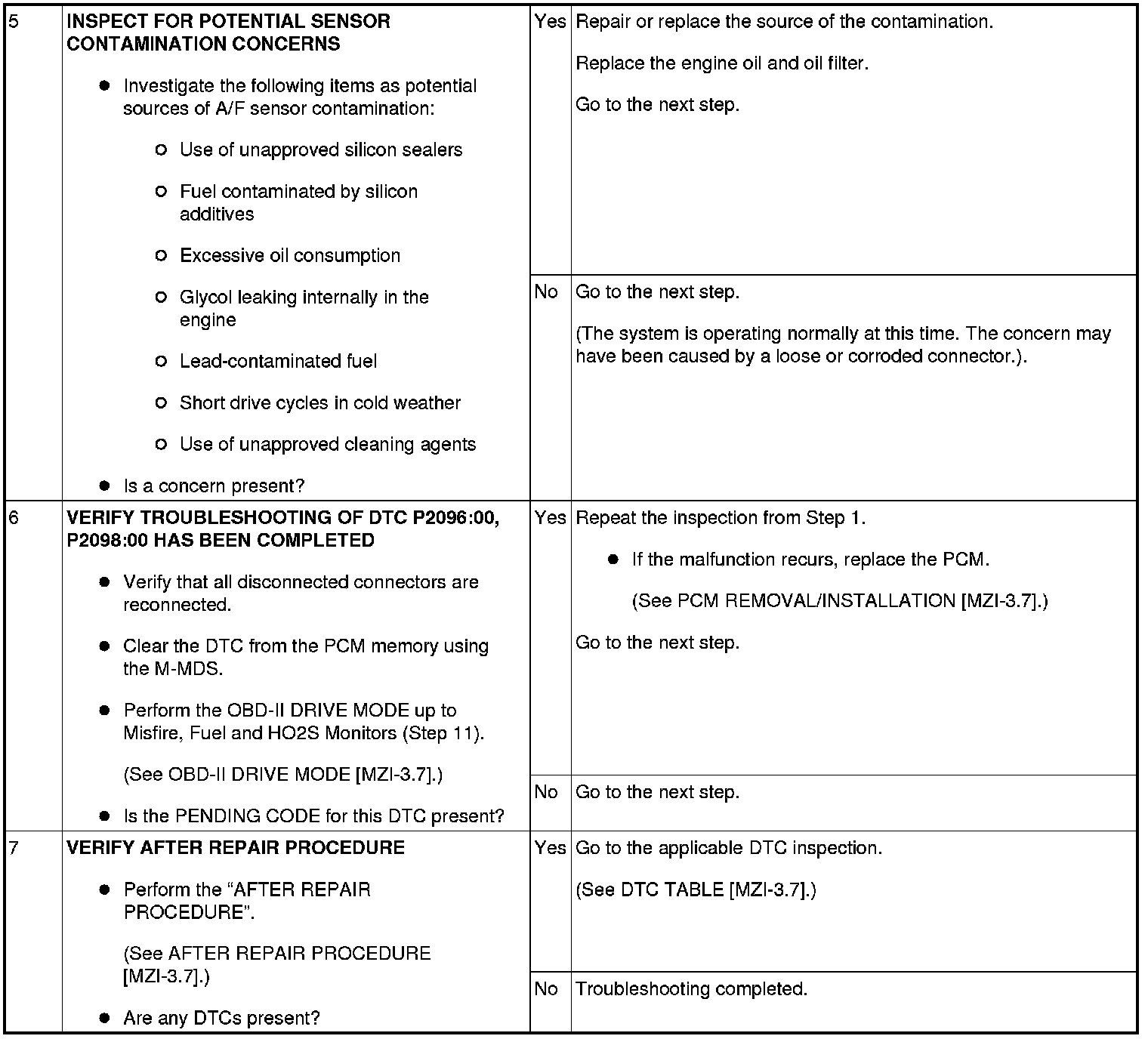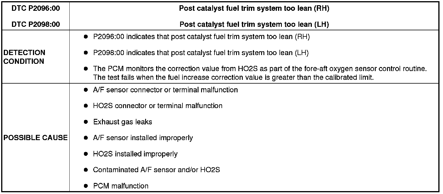 DTC P2096:00, P2098:00 [MZI-3.7]