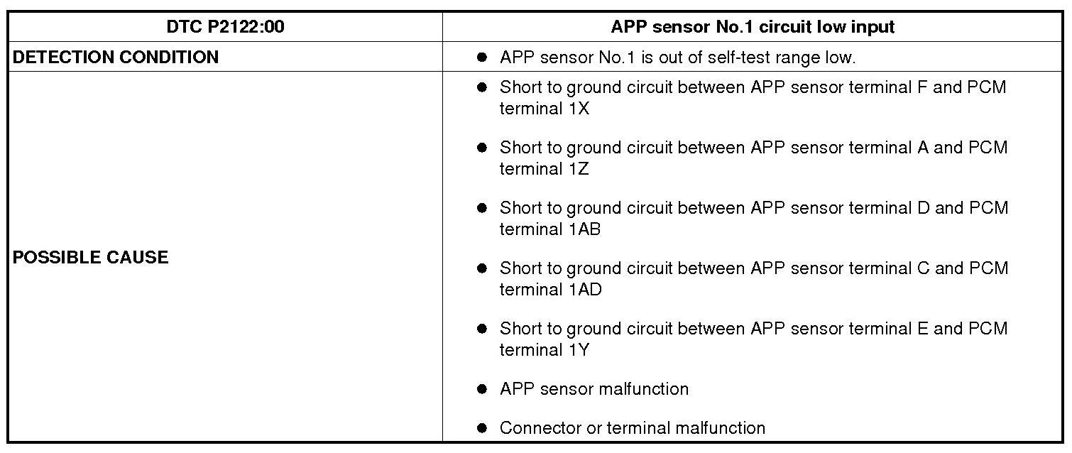 DTC P2122:00 [MZI-3.7]