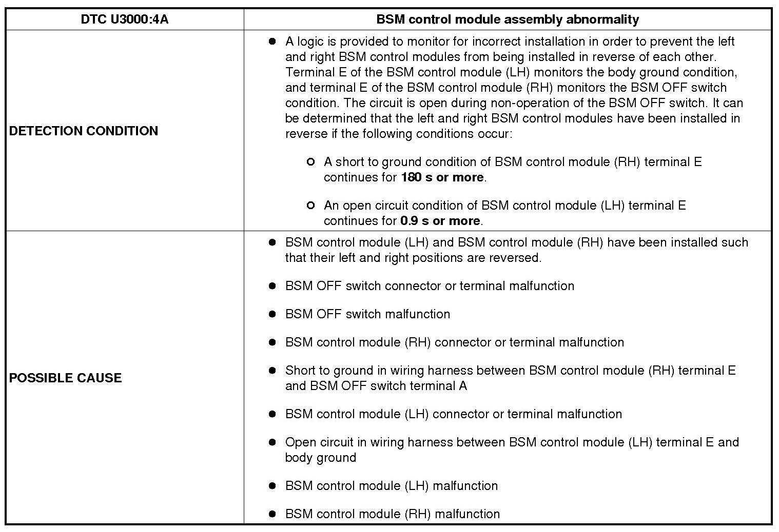 DTC U3000:4A [BLIND SPOT MONITORING (BSM)]