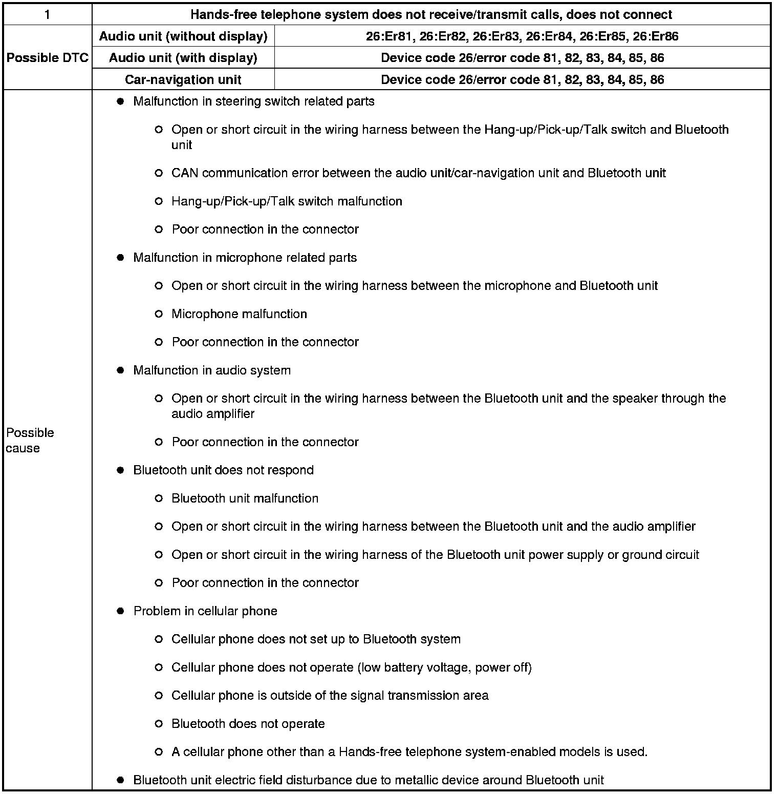 No.1 HANDS-FREE TELEPHONE SYSTEM DOES NOT RECEIVE/TRANSMIT CALLS, DOES NOT CONNECT [Bluetooth SYSTEM (HANDS-FREE TELEPHONE (HF/TEL) SYSTEM)]