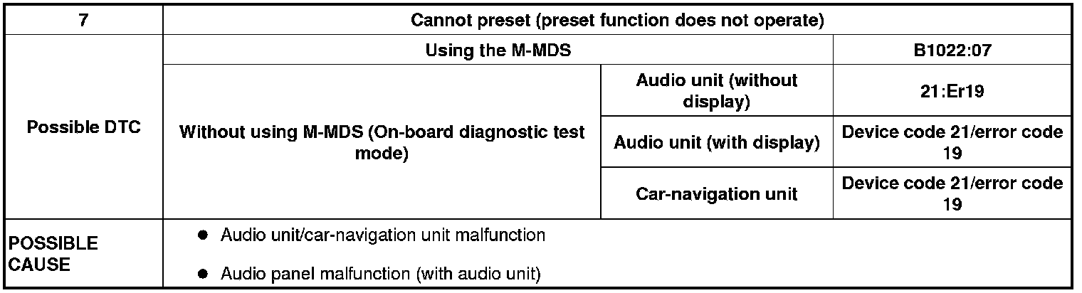 NO.7 CANNOT PRESET (PRESET FUNCTION DOES NOT OPERATE) [RADIO]