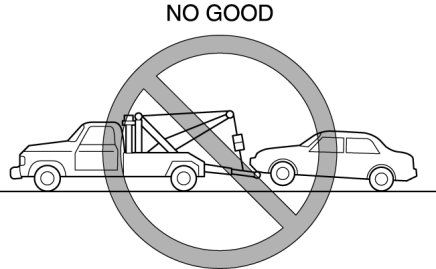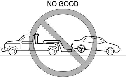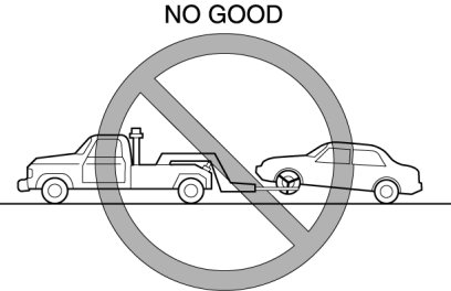 - Don't tow the vehicle pointed backward with driving wheels on the ground. This may cause internal damage to the transaxle.