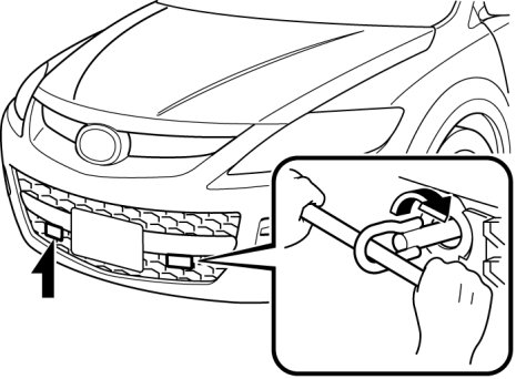 - If the tiedown eyelet is not securely tightened, it may loosen or disengage from the bumper when tying down the vehicle. Make sure that the tiedown eyelet is securely tightened to the bumper.