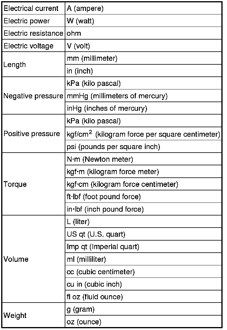 - All numerical values in this information are based on SI units. Numbers shown in conventional units are converted from these values.
