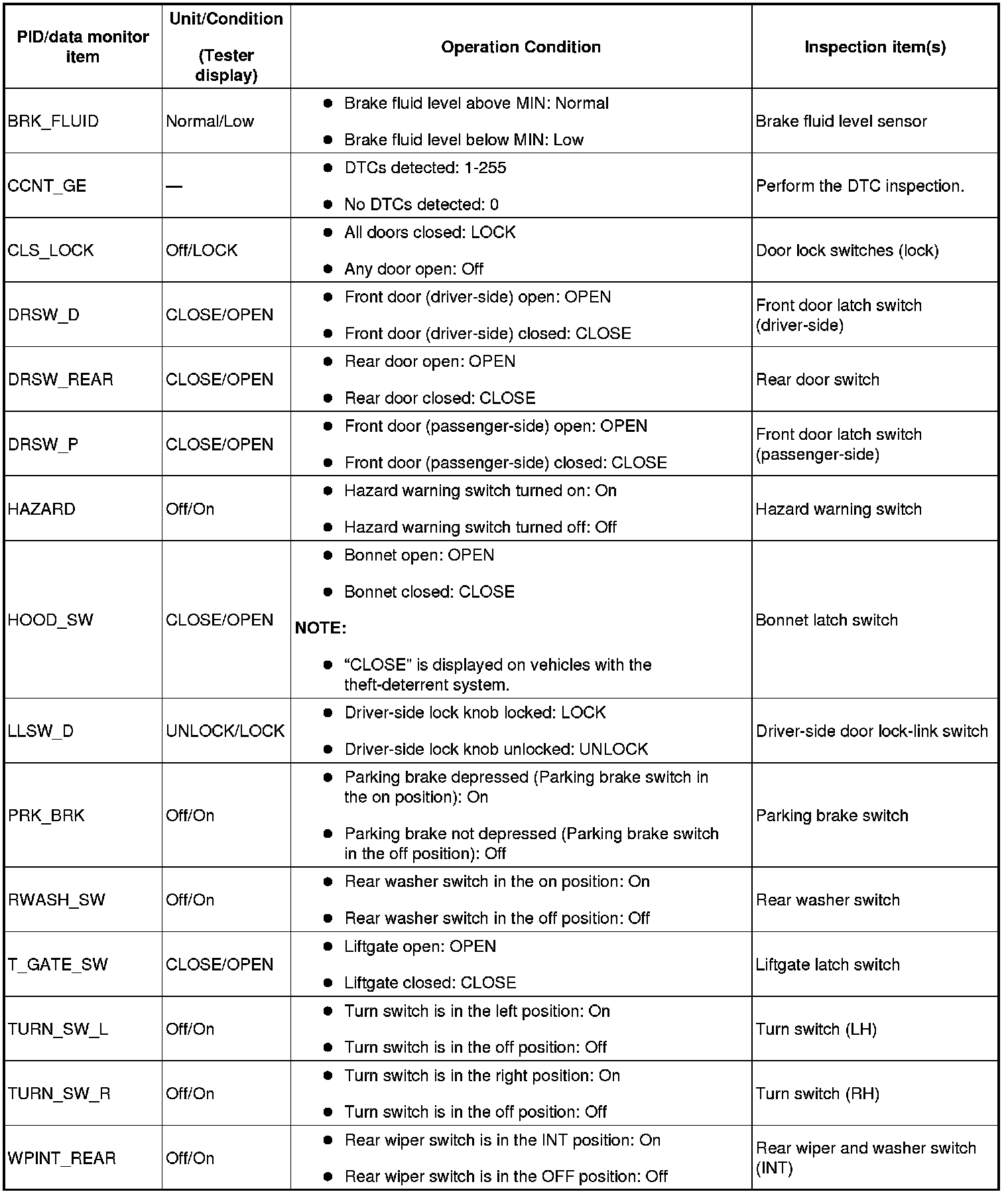 PID/DATA MONITOR TABLE [