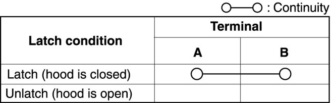 2. Inspect for continuity between the hood latch switch terminals.