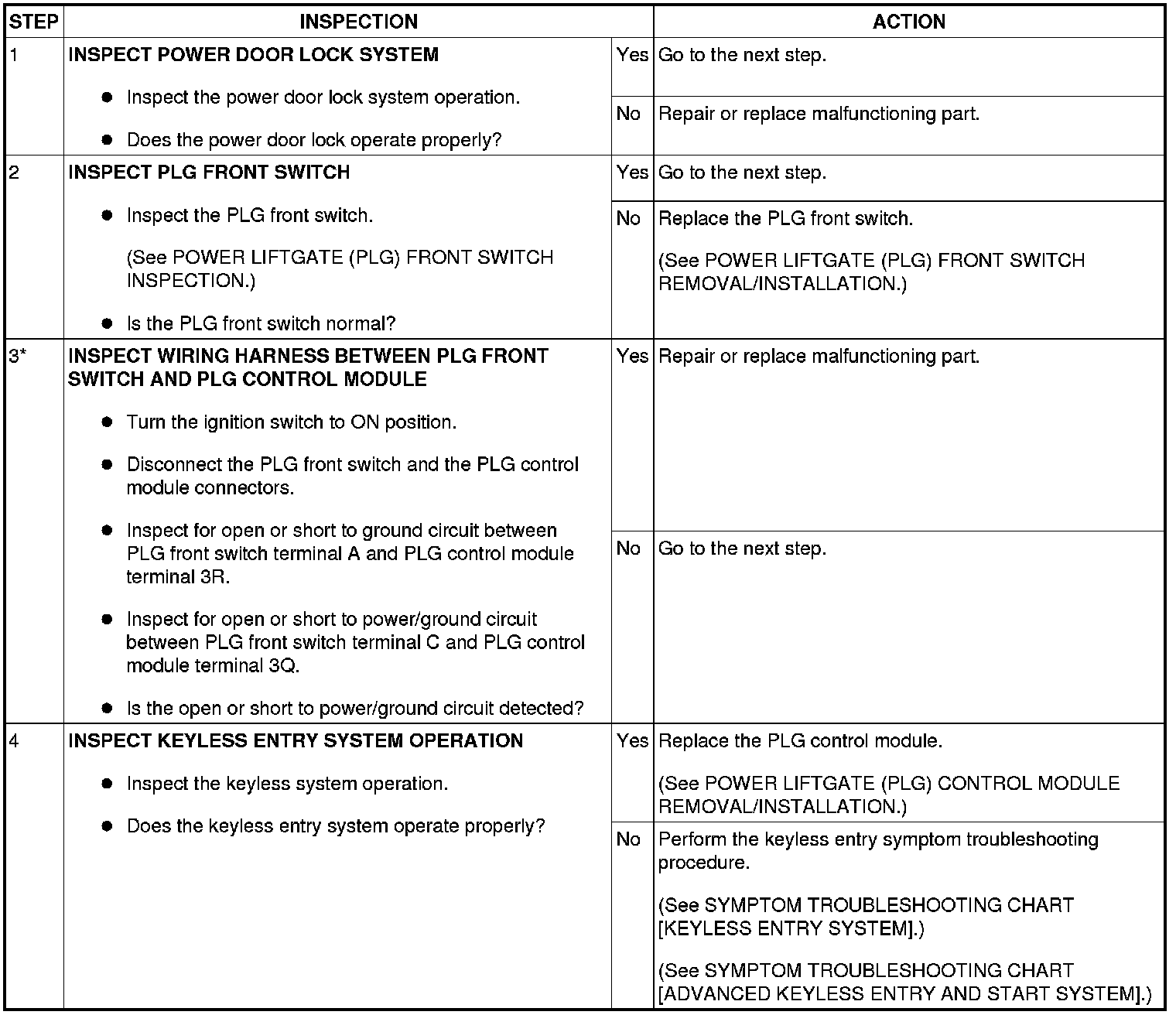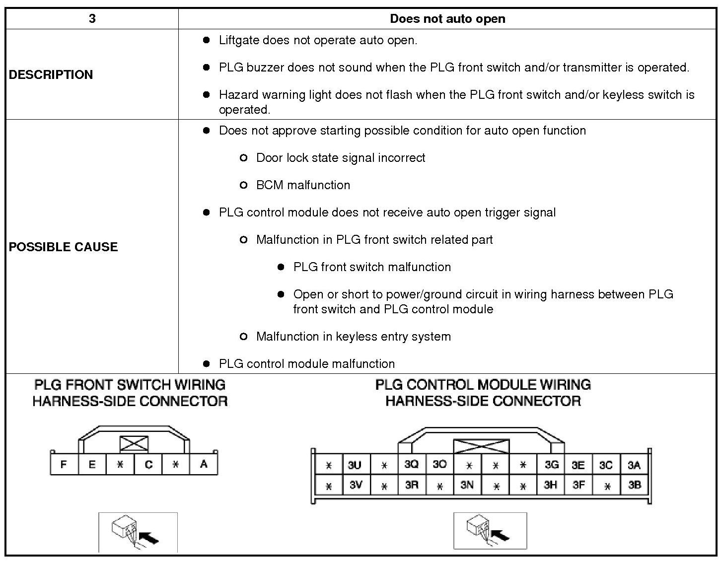 No.3 DOES NOT AUTO OPEN [POWER LIFTGATE (PLG) SYSTEM]