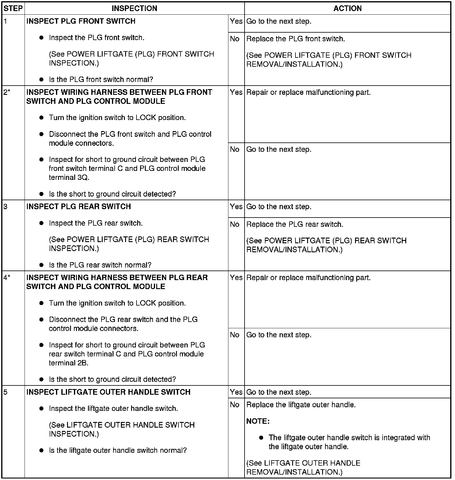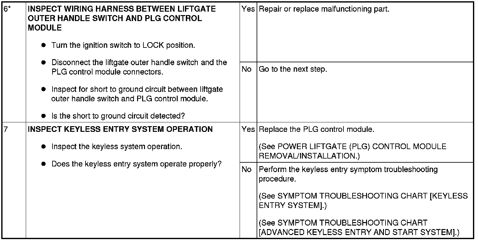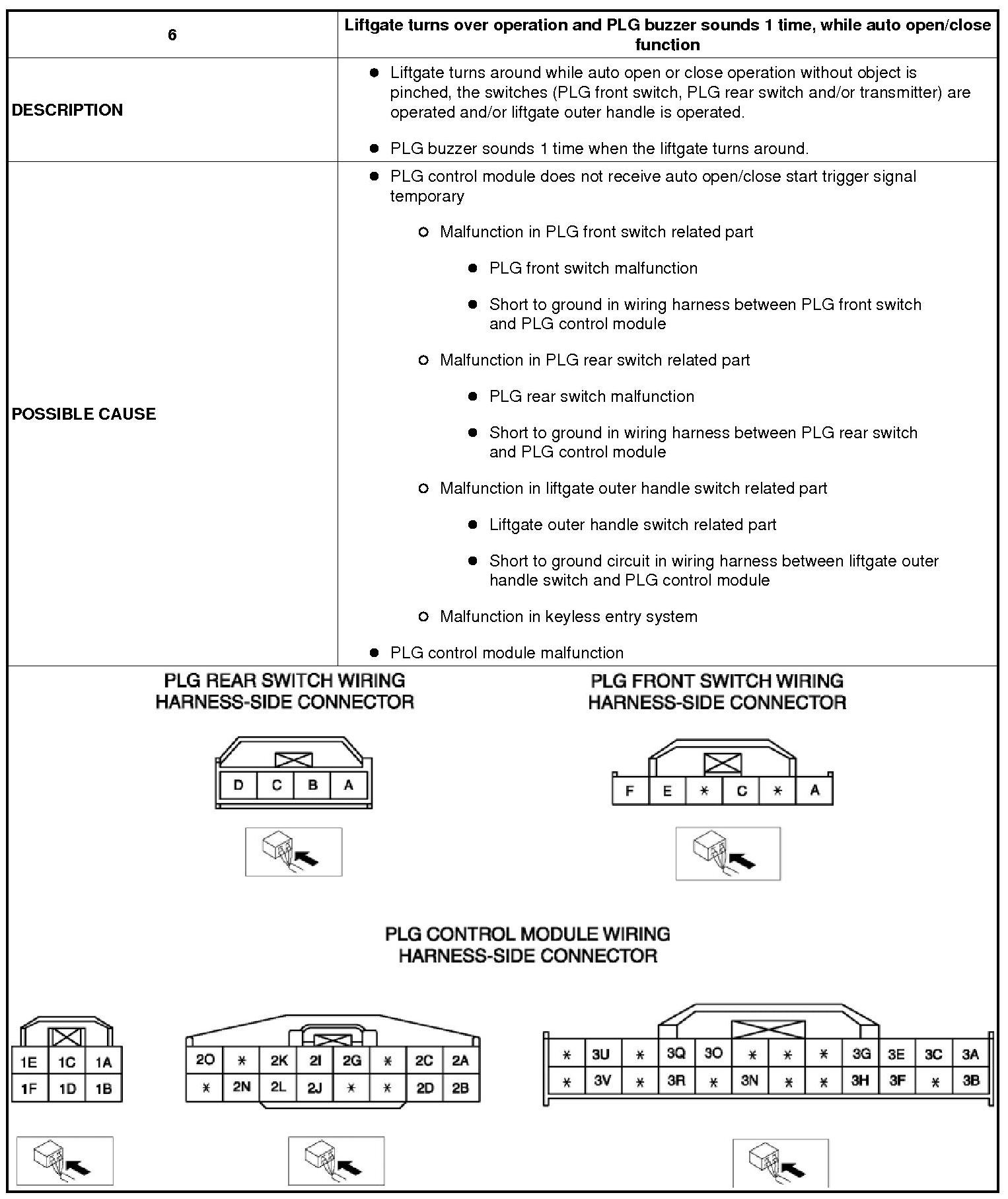 No.6 LIFTGATE TURNS OVER OPERATION AND PLG BUZZER SOUNDS 1 TIME, WHILE AUTO OPEN/CLOSE FUNCTION [POWER LIFTGATE (PLG) SYSTEM]