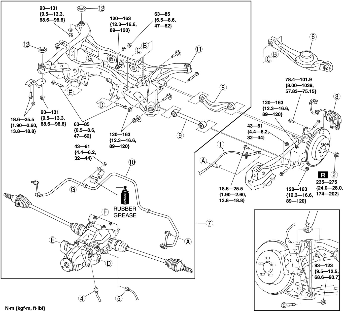 - Jacking up the rear suspension with unloaded condition will lighten the force on the bushing and make it easier to perform the procedure.