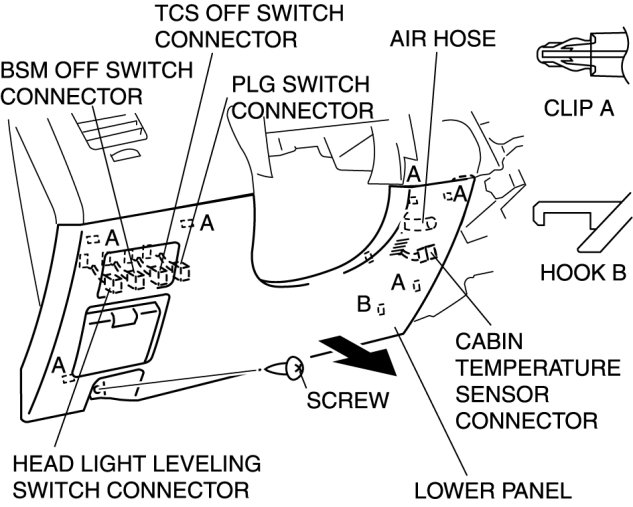 4. Detach clips A and hook B by pulling them in the direction of the arrow.