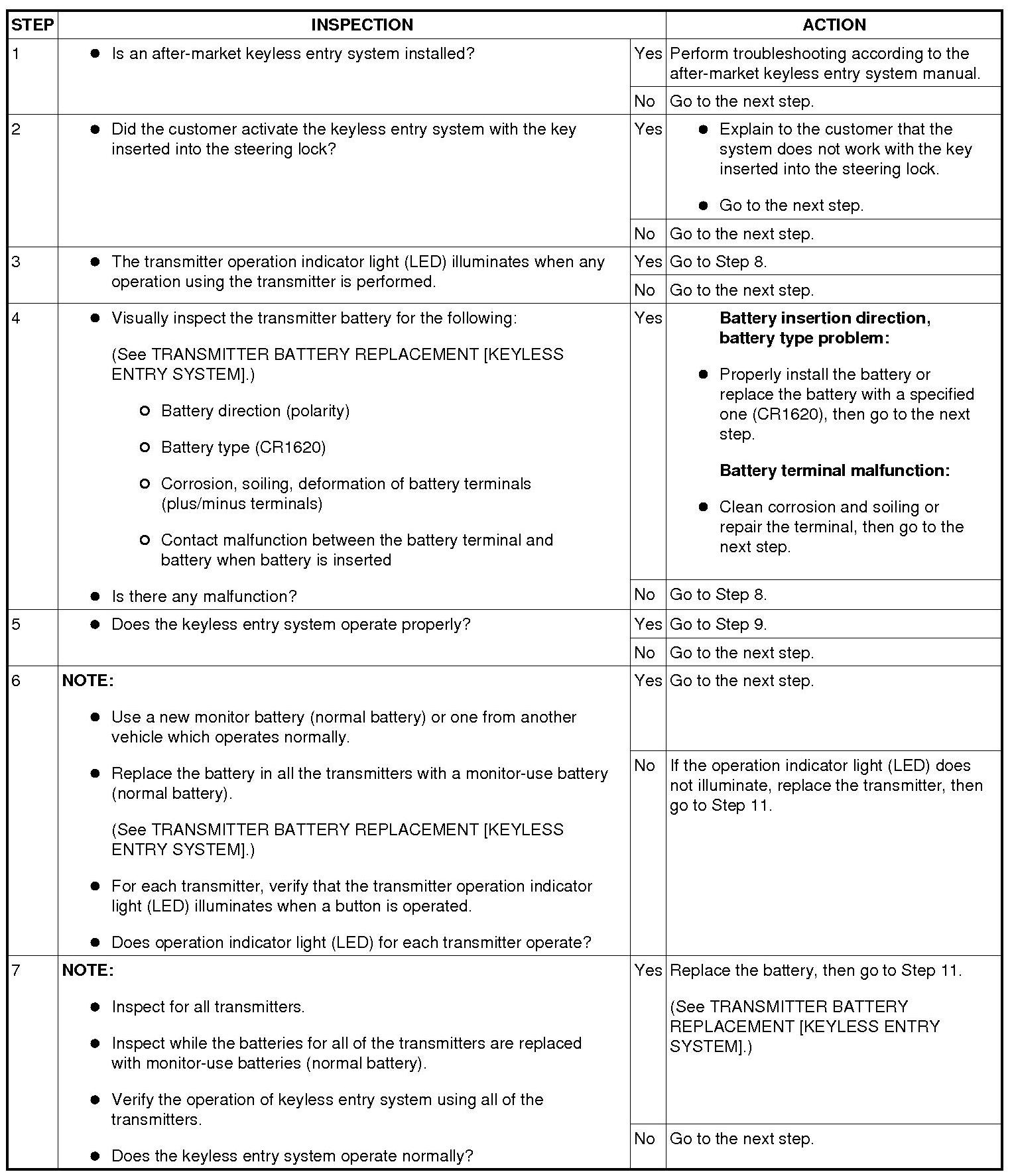 KEYLESS ENTRY SYSTEM PRELIMINARY INSPECTION [KEYLESS ENTRY SYSTEM]