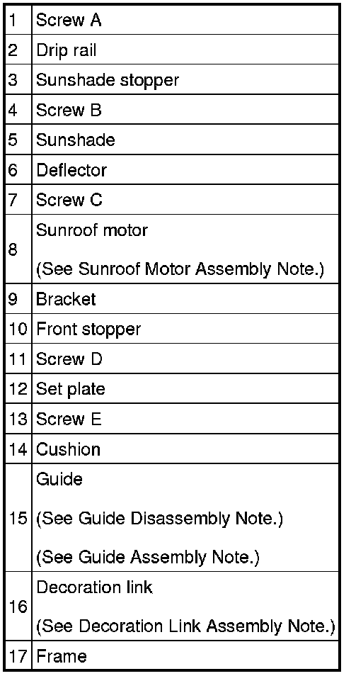 Sunroof Motor Assembly Note