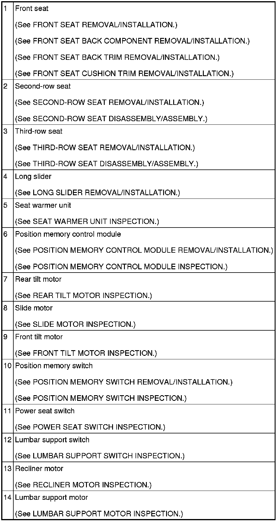 SEAT LOCATION INDEX