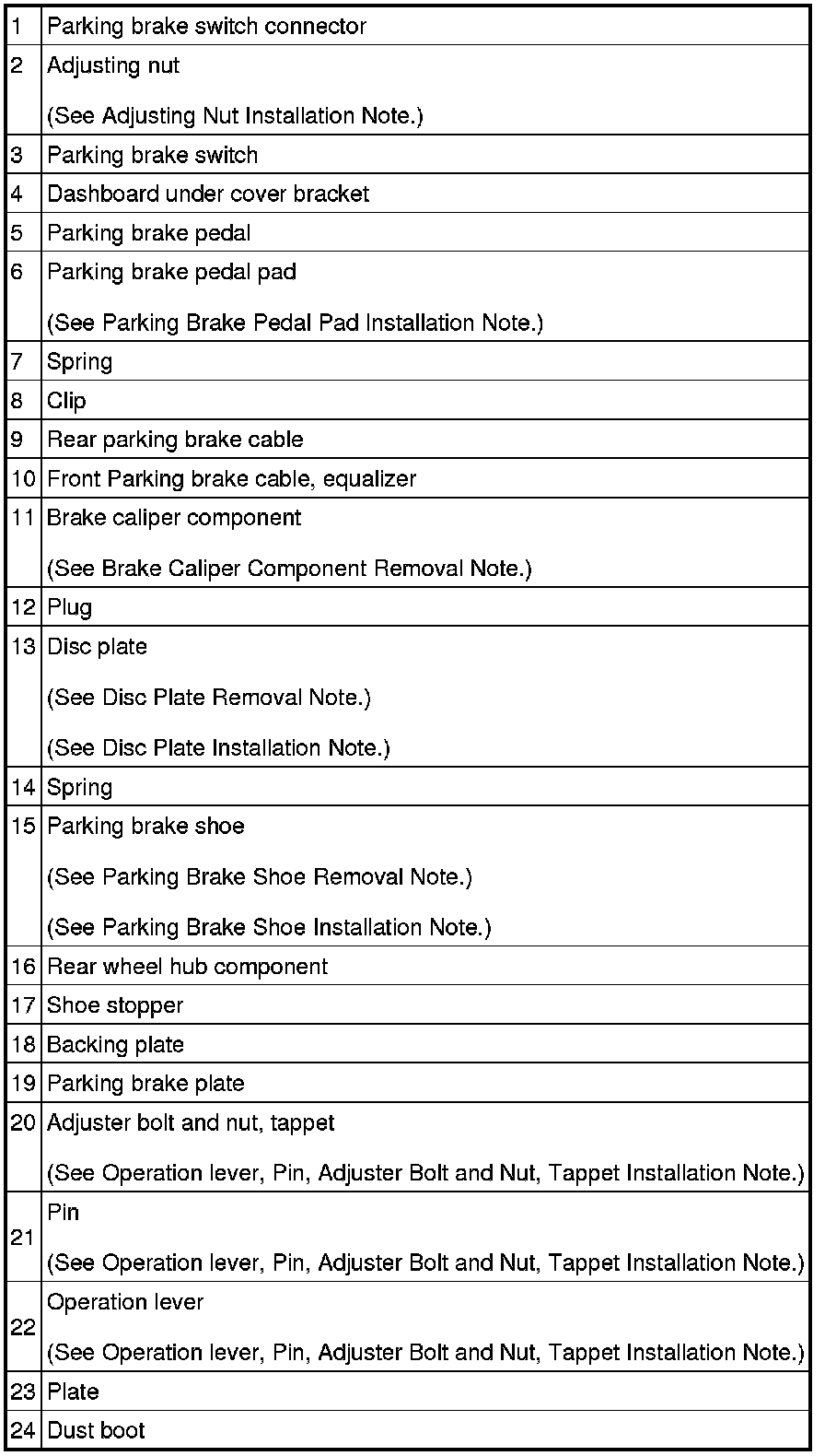 Parking Brake Shoe Removal Note