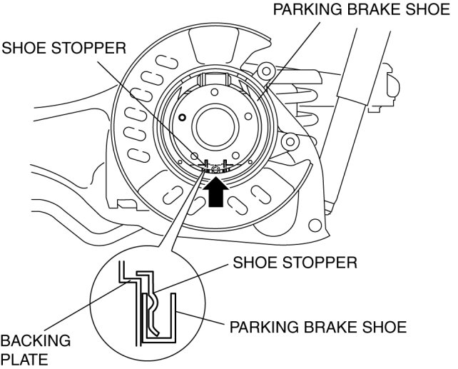 1. Pull the parking brake shoe downward and disengage it from the shoe stopper.