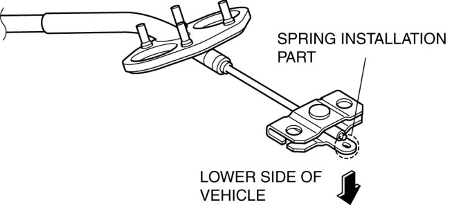 1. Install the front parking brake cable and equalizer so that the installation area of the equalizer spring is on the underside of the vehicle as shown in the vehicle.