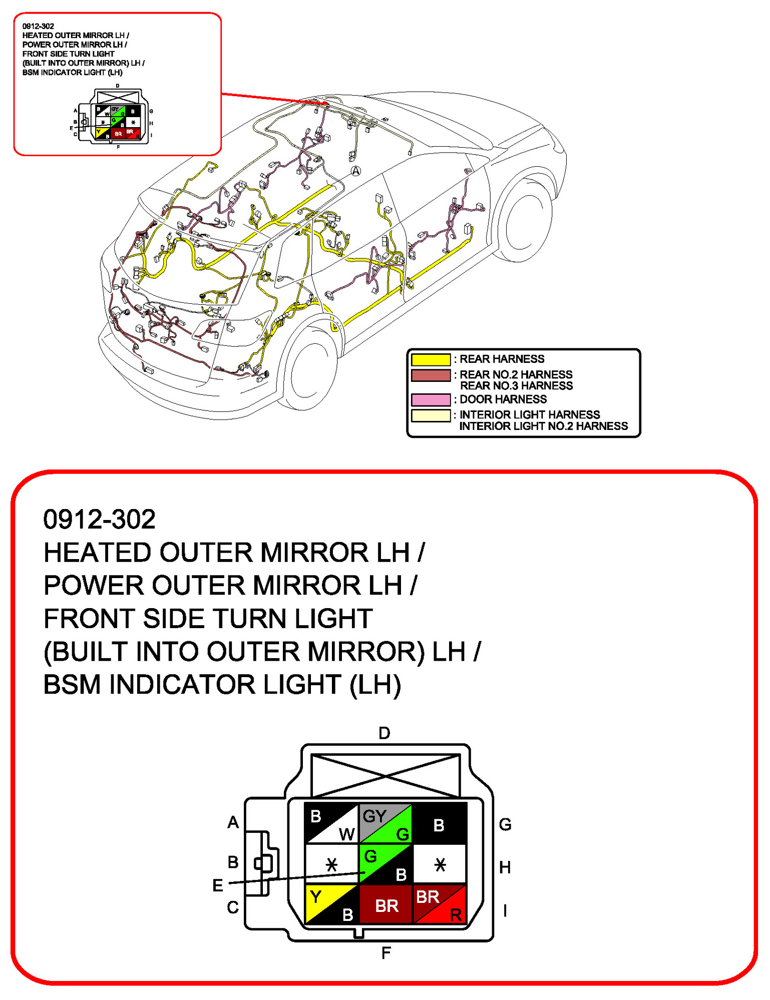 Heated Outer Mirror LH/Power Outer Mirror LH/Front Side Turn Light (Built Into Outer Mirror) LH/BSM Indicator Light (LH)