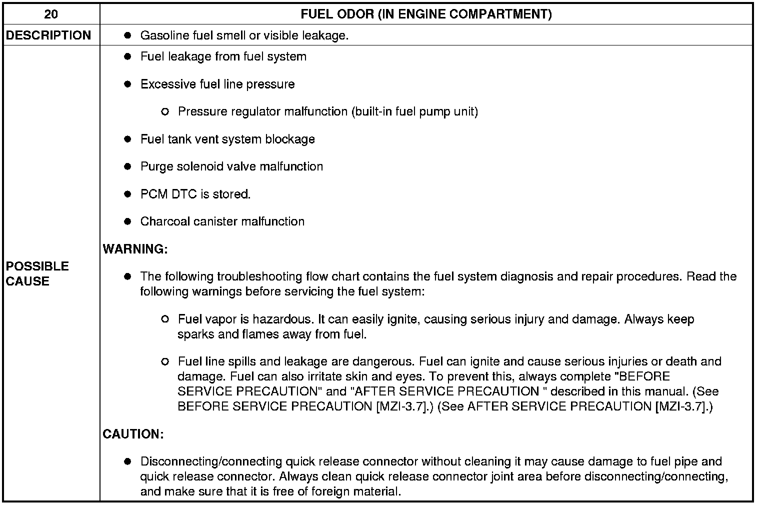 NO.20 FUEL ODOR (IN ENGINE COMPARTMENT) [MZI-3.7]